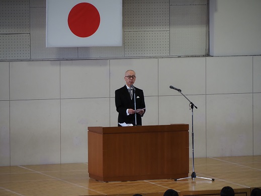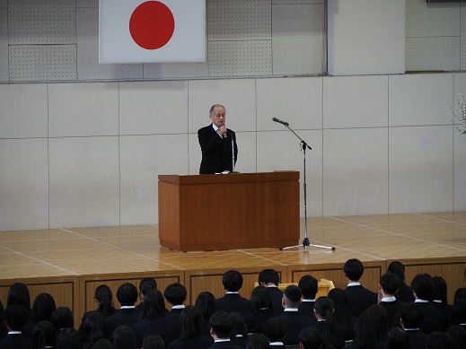 学校長式辞では、授業料無償化の実現に至るまでに尽力された多くの方々への感謝の大切さについて触れられるとともに、在校生に向けて「4月からは上級生として新入生を温かく迎えてほしい」との話がありました。