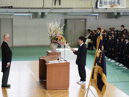 3月19日(木)、本校体育館にて3学期修了式を行いました。式では、学校長式辞、離任式、伝達表彰、壮行会が行われました。