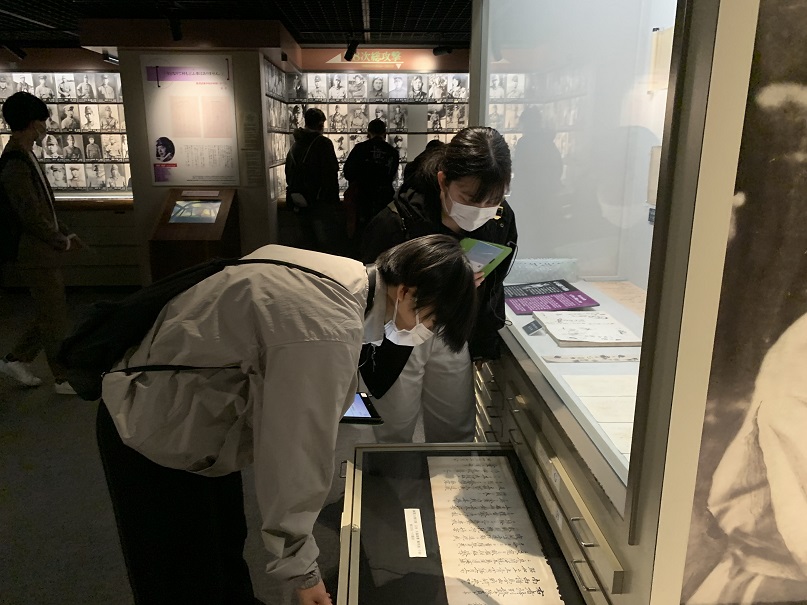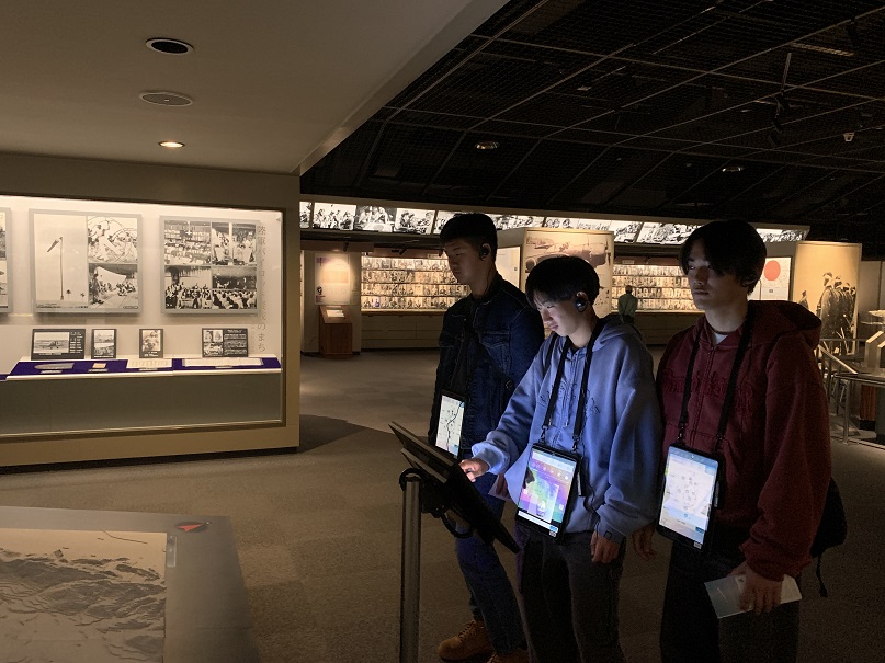最初に訪れたひめゆり平和祈念資料館では、自分たちと同年代の生徒たちが戦争に巻き込まれていった様子を、展示や映像、手記から学びました。生徒たちは戦争をより身近なものとして受け止める機会となり、その思いを胸に平和祈念公園の見学にも臨むことができました。