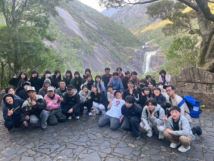 修学旅行「屋久島コース」では、まず知覧特攻平和会館を訪れ、特攻隊の歴史や当時の思いに触れ、平和の大切さについて学びました。その後、知覧桜見亭で昼食をとり、屋久島市内では千尋の滝を見学しました。夜には星空観察を行い、屋久島の澄んだ夜空に広がる満天の星を眺める貴重な時間となりました。