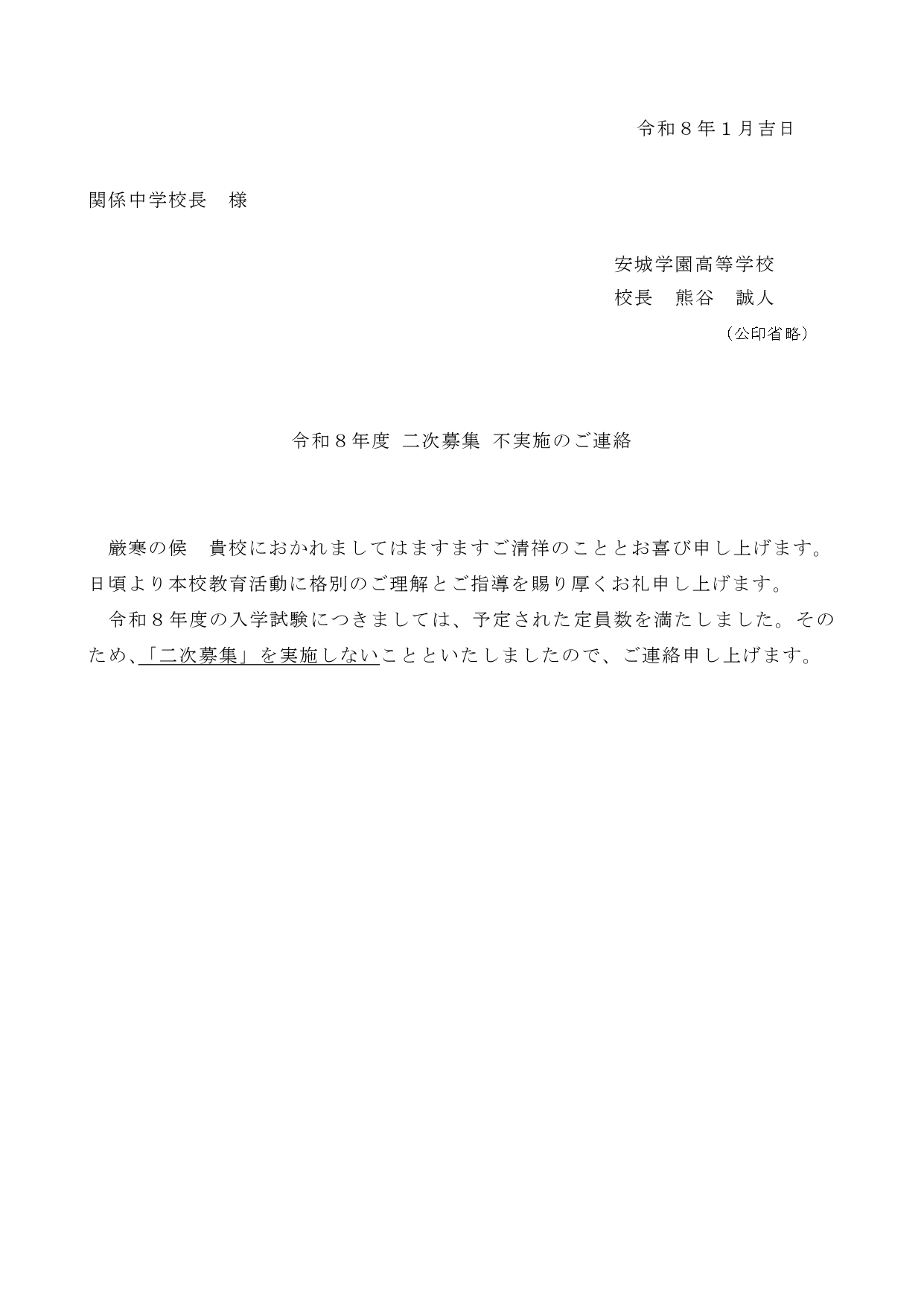 令和8年度 入学試験「二次募集」 不実施のご連絡 平素よ…続きを読む ≫ -