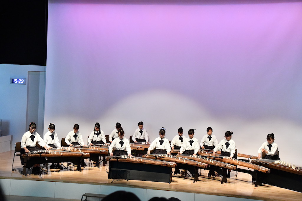 伝統的な古典曲に加え、ポップス、ジブリ曲、アニメ『この音とまれ!』の作中曲の演奏などで、自分たちも感動できる活動を目指しています。初心者でも、週3回の練習で2~3か月で基本的な曲は演奏できるようになります。楽器は学校の箏を使うことができます。箏の美しい音色で、癒しを届けませんか。是非、見学・体験に来てください。