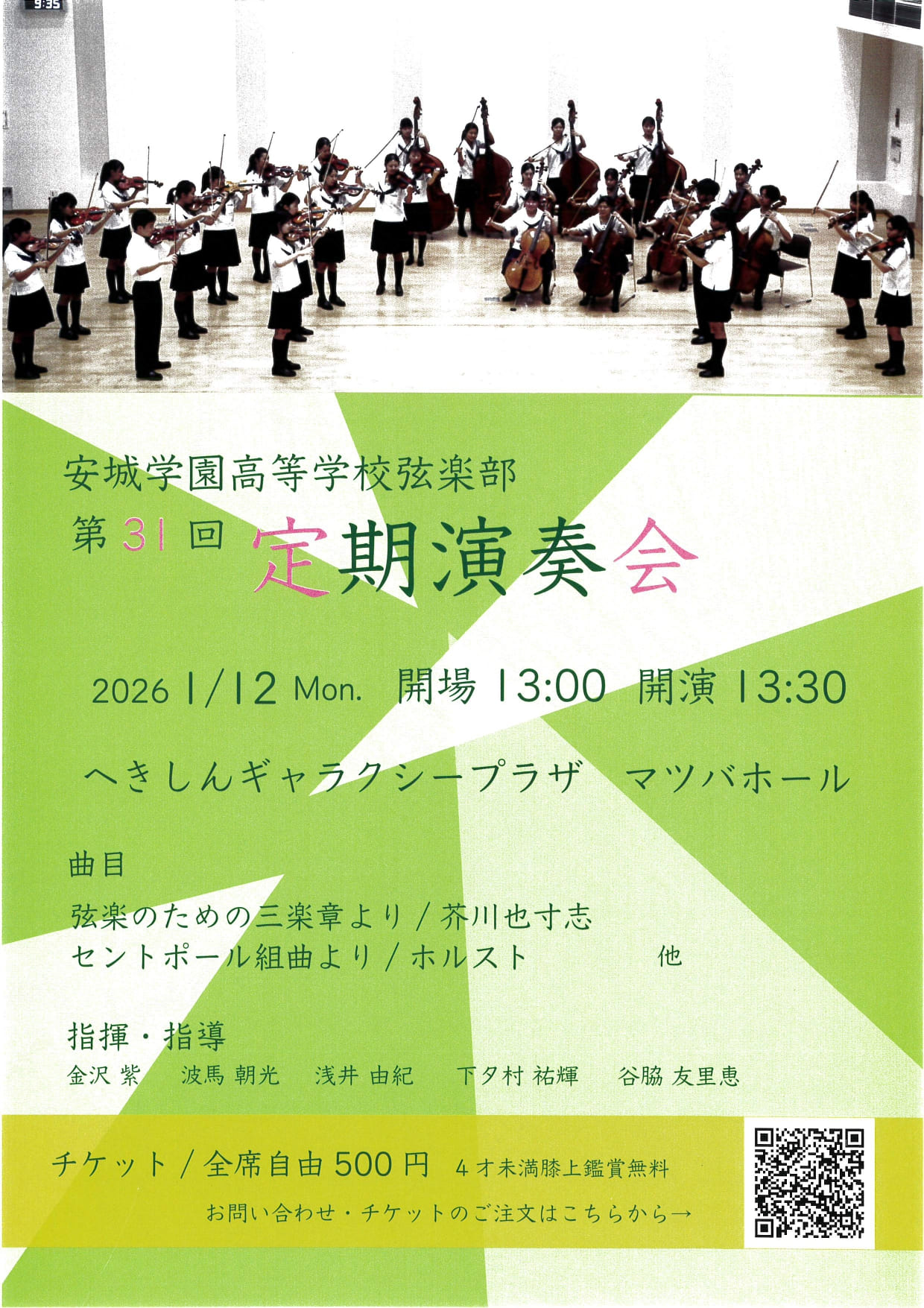 弦楽部は、1月12日(月)に「第31回定期演奏会」を開催します。