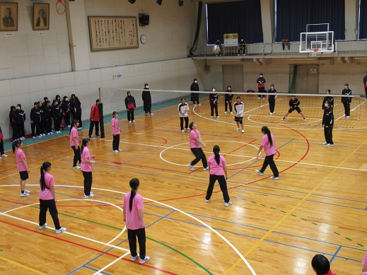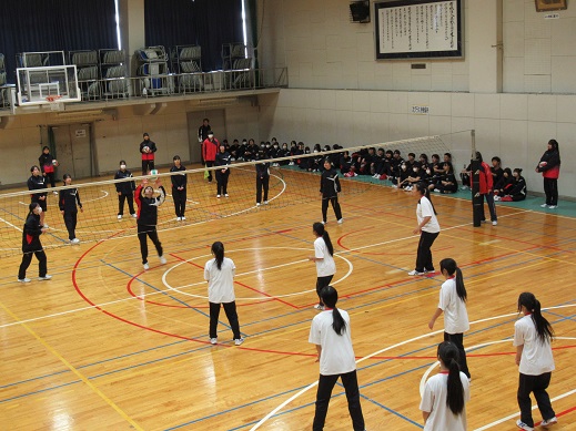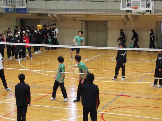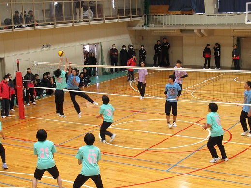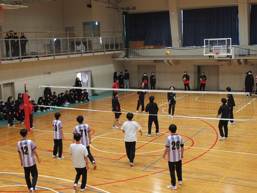 12月16日(火)・17日(水)の2日間、体育館にて全学年クラス対抗の球技大会(バレーボール)を男女別で実施しています。各クラスが作戦を立てて試合に臨み、白熱したラリーや好プレーが随所に見られました。得点が入るたびに大きな歓声が上がり、仲間を応援し声を掛け合う姿から、クラスの団結力や学年を超えた一体感が感じられる行事となっています。