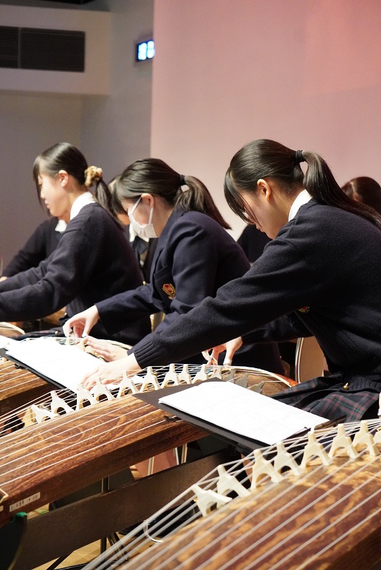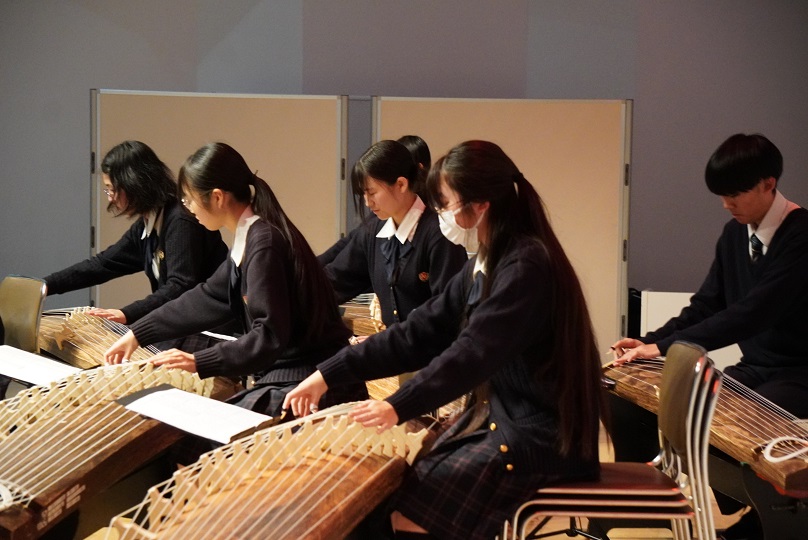 当日は、日頃の練習の成果を生かし、箏の美しい音色が響く多彩な演目を披露しました。