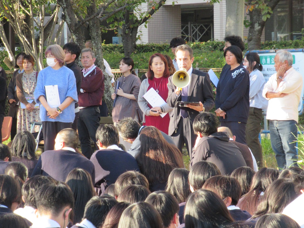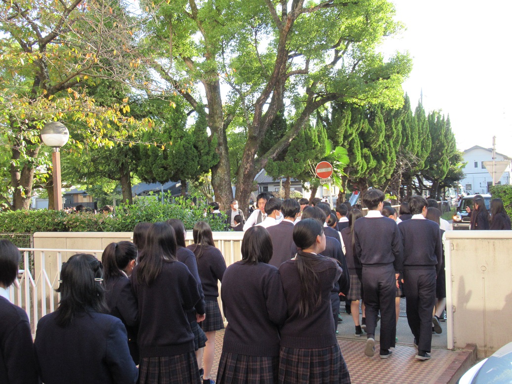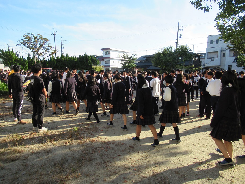 10月30日(木)6限の授業終了10分前に、予告なしの避難訓練を実施しました。 生徒たちは落ち着いて行動し、約10分で全員が避難場所へ移動を完了しました。いつ、どこで起こるか分からない災害に備えるためには、日頃からの意識と行動力を養うことが大切です。 今回の訓練を通して、「自ら考え、判断し、行動する防災力」を身につけることの重要性を再確認しました。