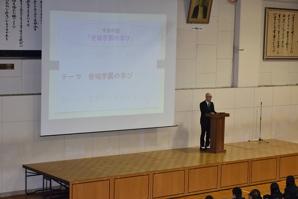 校長式辞では、本校の学習モデルである「智・徳・体・感・行」に触れ、安城学園の学びの在り方について話がありました。また、校長自身が詩人・茨木のり子さんの研究を進め、その成果を一冊の本としてまとめる挑戦をしていることが紹介され、未知のものに挑戦し続ける姿勢の大切さについて、生徒に向けてメッセージが送られました。