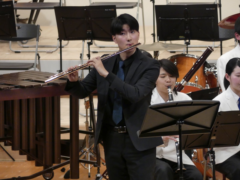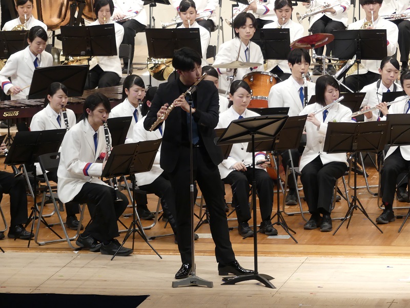 当日は、本校の卒業生で、これまで数々のコンクールにおいて優秀な成績を収めているフルート奏者・福田京氏をゲストに迎え、素晴らしい演奏を披露していただきました。