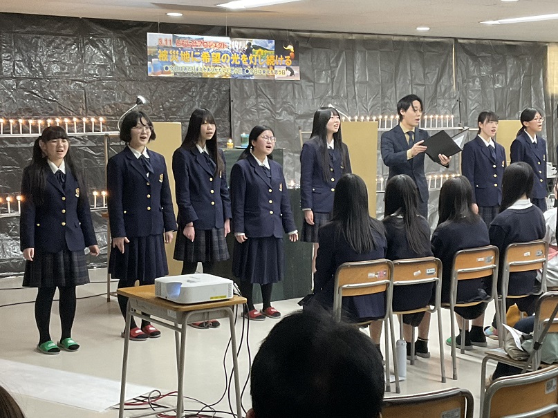 最後は合唱部のリードのもと、「花は咲く」を全員で合唱し、震災を忘れず、未来へと想いをつなぐ時間となりました。