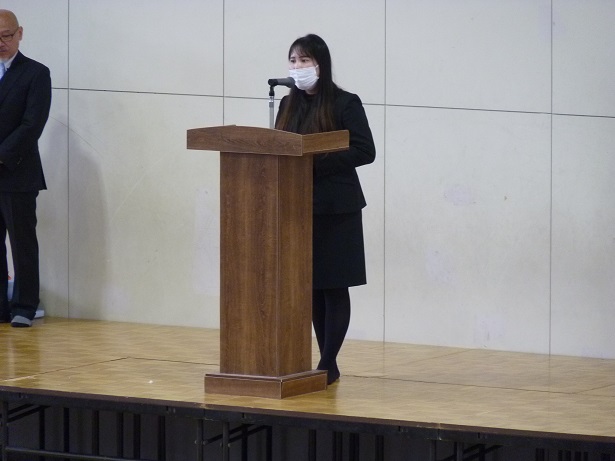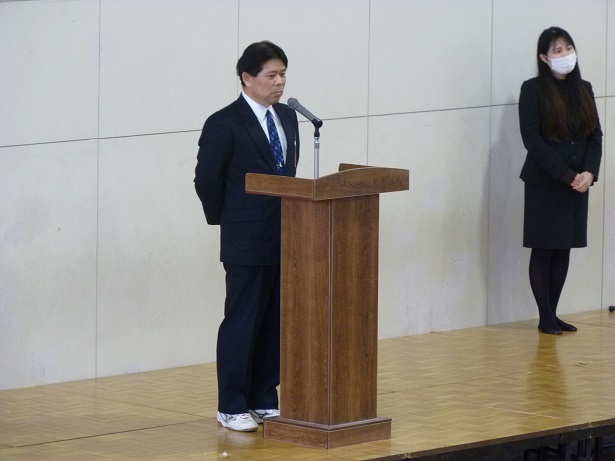 3月19日(木)、本校体育館にて3学期修了式を行いました。式では、学校長式辞、離任式、伝達表彰、壮行会が行われました。
