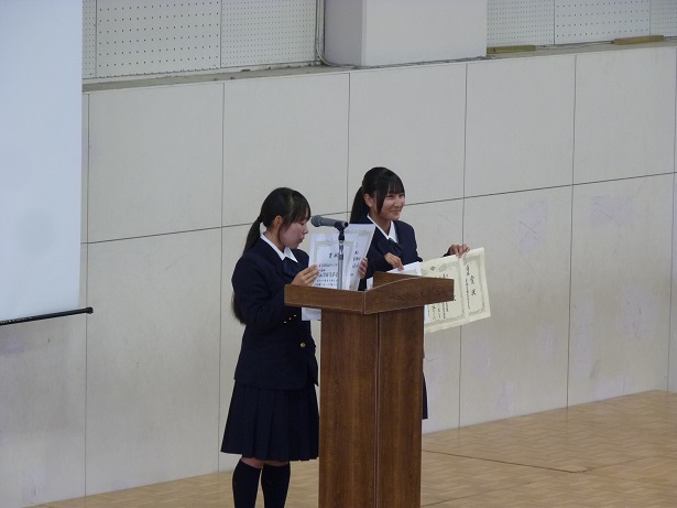 最後に、クラブ活動における伝達表彰を行い、式を締めくくりました。